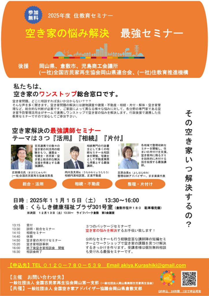 【共催】(一社)全国空き家アドバイザー協議会 岡山県倉敷支部